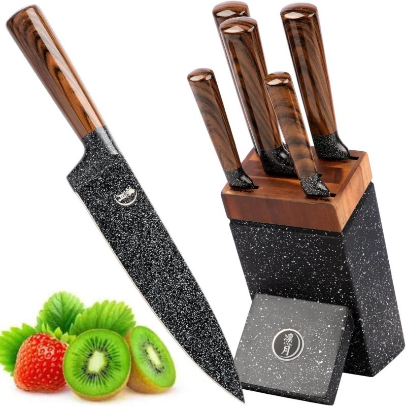 This knife set features blades made of durable stainless steel, ensuring long-lasting sharpness and performance. The set comes with a bamboo knife block that not only keeps your knives organized but also adds a touch of elegance to your kitchen.