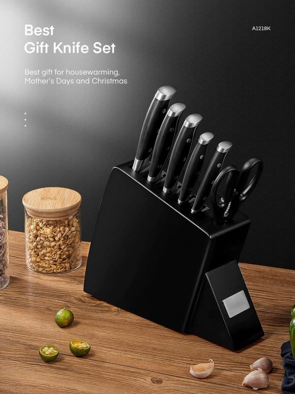 The set’s compact dimensions, measuring 9.7 x 14.3 x 4.33 inches, make it a space-saving and elegant addition to any kitchen. Elevate your cooking experience with this exceptional knife set from Bfonder.