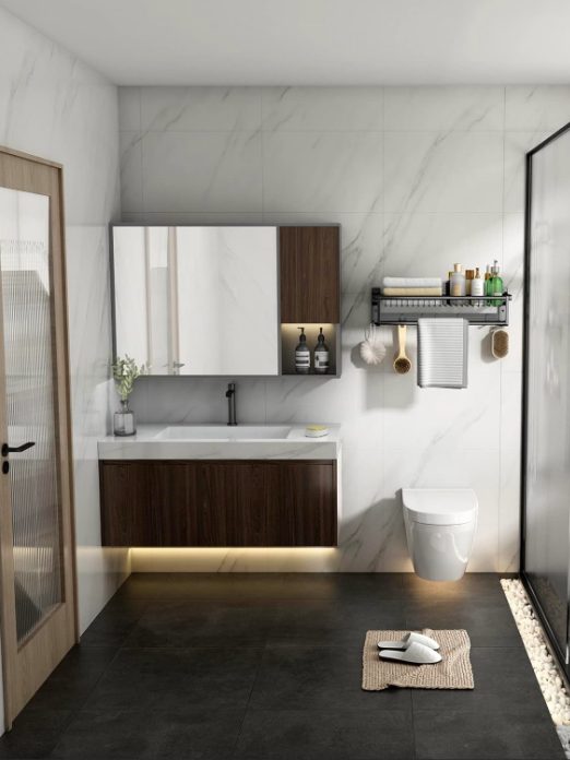 Its simple presence, measuring 23.23″L x 8.66″W x 6.69″H, transforms a bathroom wall into an efficient and stylish space. When standing, installed with care, this wall not only organizes but also enhances the atmosphere , adding a touch of refined modernity to the daily routine.