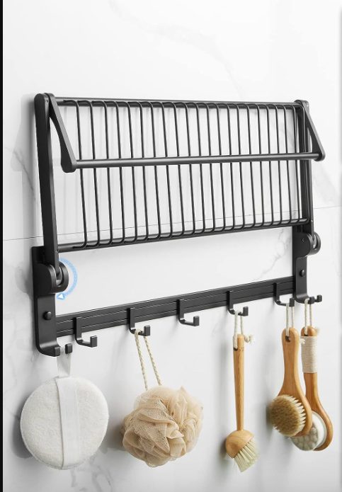 2. Wall Mounted Multifunctional Folding Towel Holder and Rack Hook